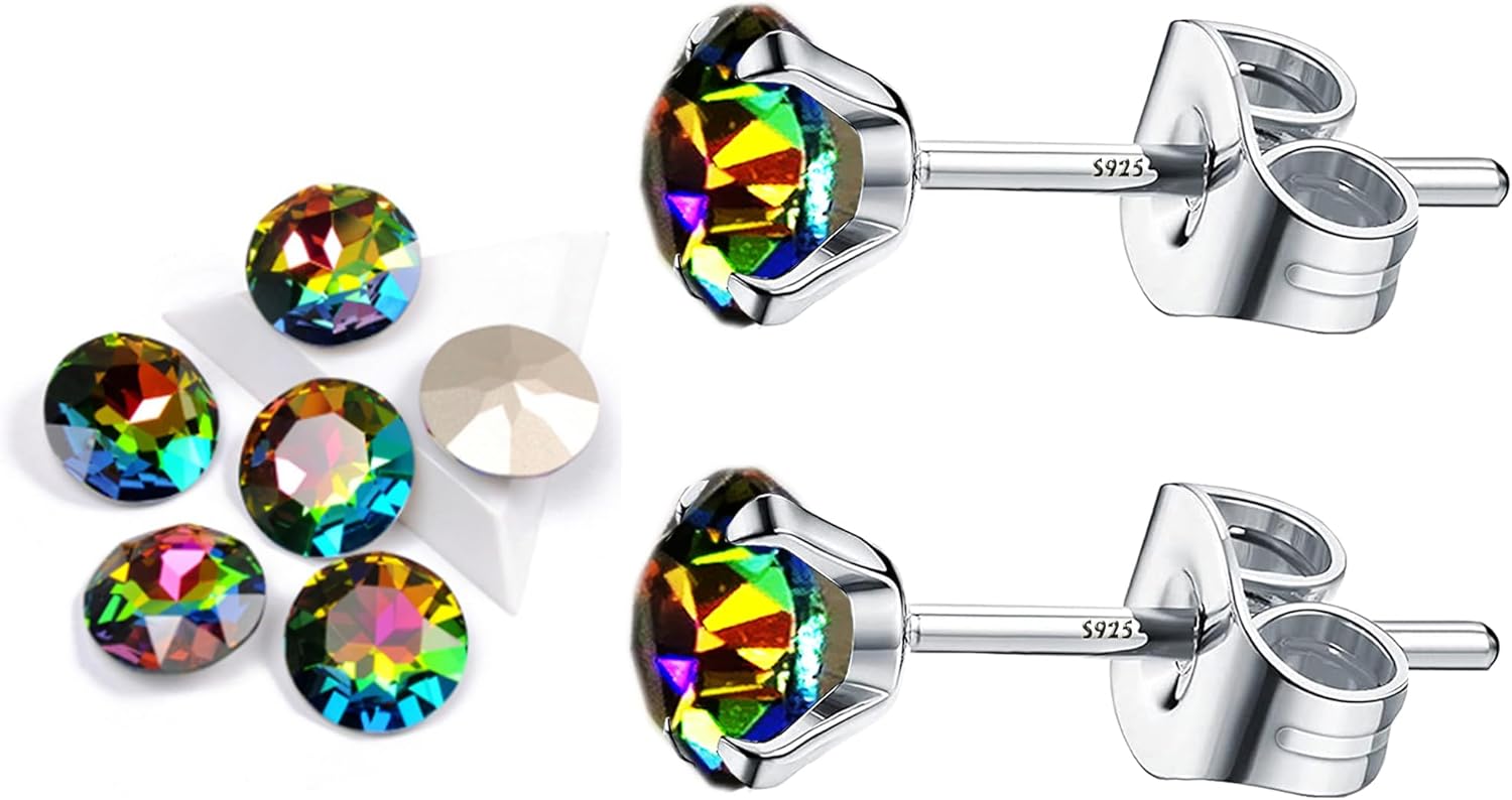 4mm Sunnyshopday Pure Brilliance Iridescent Crystal Stud Earrings For Women – Solid 18K Gold Post And 925 Sterling Silver – Premium Quality Faux Diamond Stud CZ Stud Earrings
