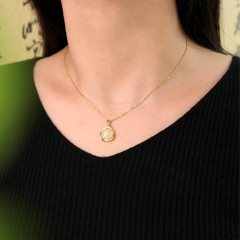 - Material: Hetian White Jade, Hetian Cyan Jade, 925 Sterling Silver, 925 Sterling Silver Plated Gold, Zircon