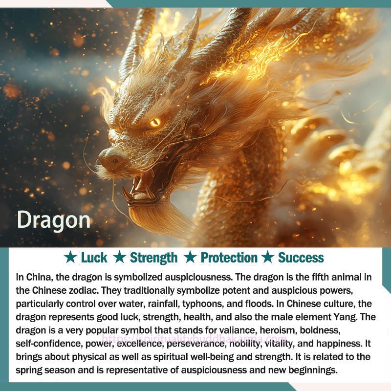 In China, the dragon and the phoenix are symbolized auspiciousness. Along with the Kylin and tortoise, they were known as the "Four Supernatural Spirits." The dragon is the fifth animal in the Chinese zodiac. They traditionally symbolize potent and auspicious powers, particularly control over water, rainfall, typhoons, and floods. In Chinese culture, the dragon represents good luck, strength, health, and also the male element Yang. In systematized mythology, the dragon is considered male and is paired with the phoenix (female); together the two creatures symbolize marital harmony. The dragon works as a mirror to the phoenix, symbolizing masculine energy, strength, and protection.