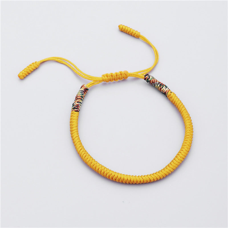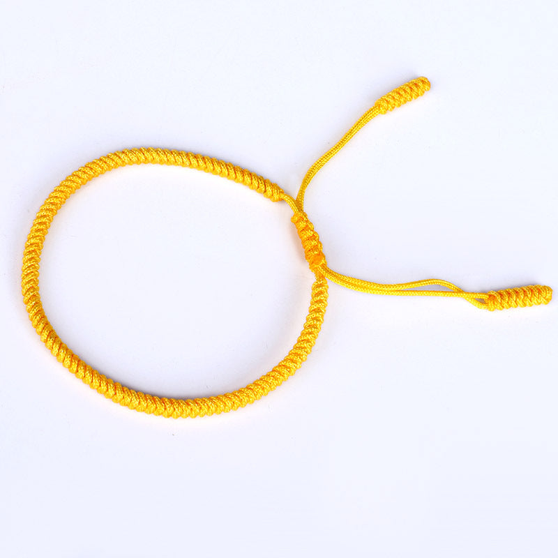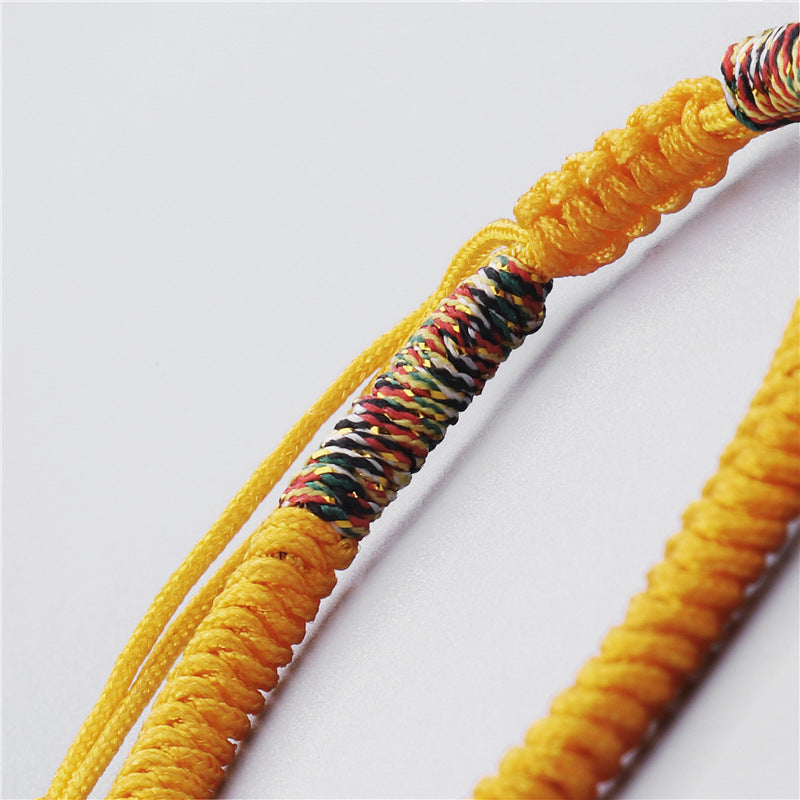 This Tibetan Vajra Knot Bracelet is crafted with a vibrant yellow thread, symbolizing wealth and prosperity. In many cultures, yellow represents wealth, success, and abundance, particularly associated with money and gold. The handwoven design not only adds beauty but also conveys a deep connection to the earth and universal energies, helping the wearer attract wealth and good fortune.