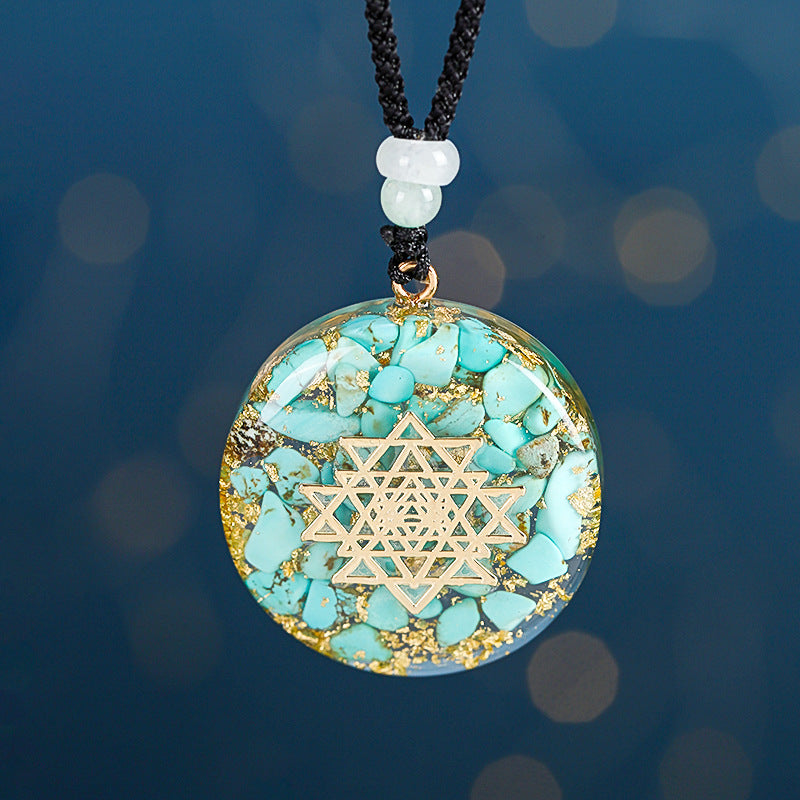 054 Turquoise Energy Pendant Necklace | Yoga Meditation Crystal Resin Jewelry, Balance Energy, Enhance Spirituality