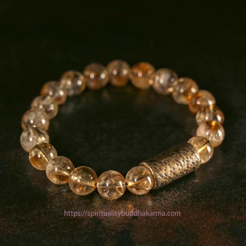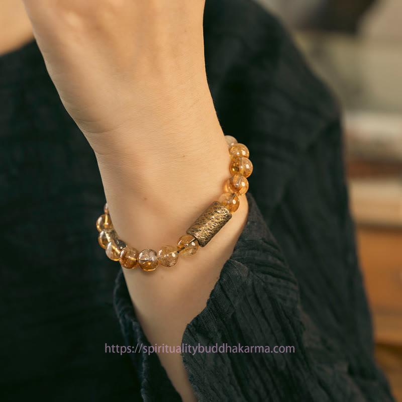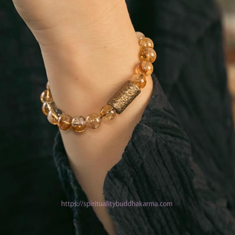 Golden Energy Citrine Natural Wealth Solar Plexus Chakra (Third Chakra) Crystal Brass Bead Protection Bracelet