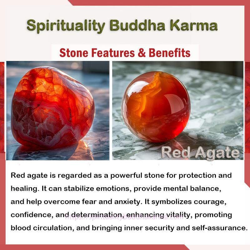 Red agate can improve logical thinking and help make key decisions. It is a good material for calm and stability and helps self-analysis. It can induce self-acceptance and self-confidence, and heal anger. It greatly helps people with traumatic disorders.