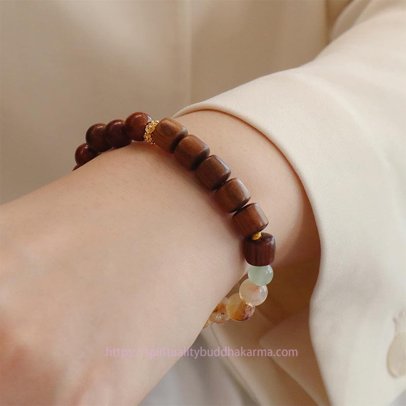 Wood Wealth Solar Plexus Chakra (Third Chakra) bracelet features a harmonious blend of sandalwood, rosewood, and Wealth Solar Plexus Chakra (Third Chakra) beads. Sandalwood is revered for its calming effects, rosewood brings warmth and positivity, while Wealth Solar Plexus Chakra (Third Chakra) is known for its protective and energizing qualities. This bracelet combines these elements to provide emotional balance, protection, and a sense of well-being, making it a powerful accessory for personal growth and tranquility.