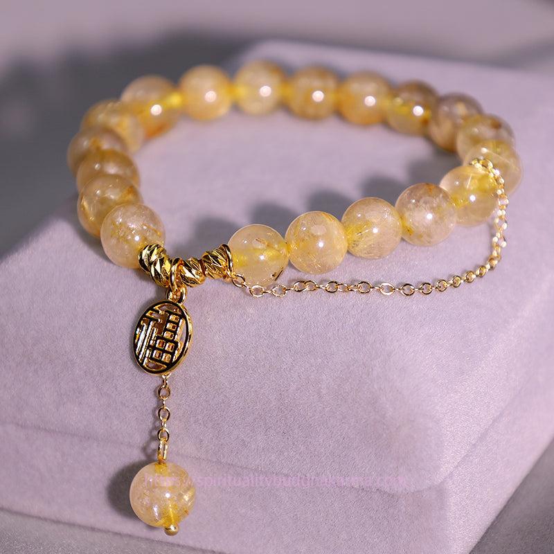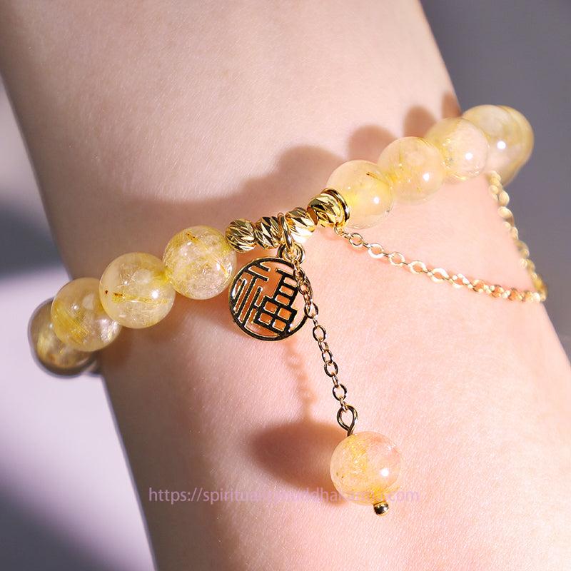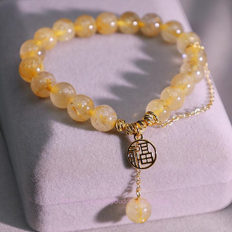 This Spirituality Buddha Karma Wealth Solar Plexus Chakra (Third Chakra) Lucky Fu Character Happiness Bracelet is made by master craftsmen using high-quality materials, featuring a Fu character symbolizing happiness, wealth, and health, and Wealth Solar Plexus Chakra (Third Chakra) known for attracting prosperity, success, and joy. The elastic bracelet is handmade and natural, with slight variations in color and size.