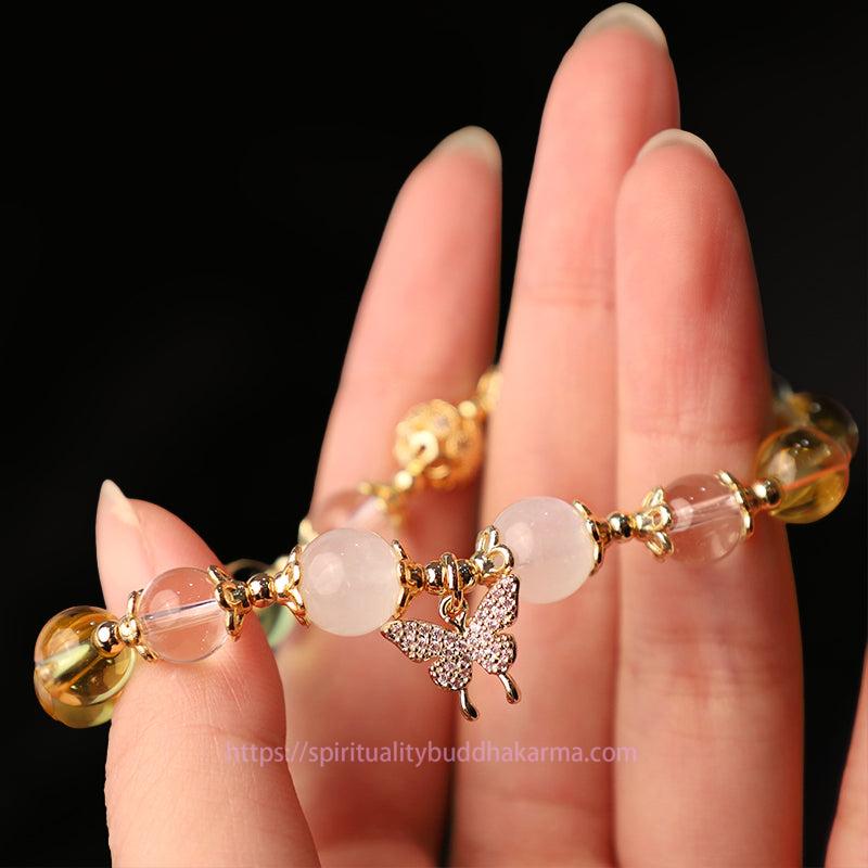 Golden Energy Citrine Wealth Solar Plexus Chakra (Third Chakra) Moonstone Butterfly Charm Prosperity Protection Bracelet