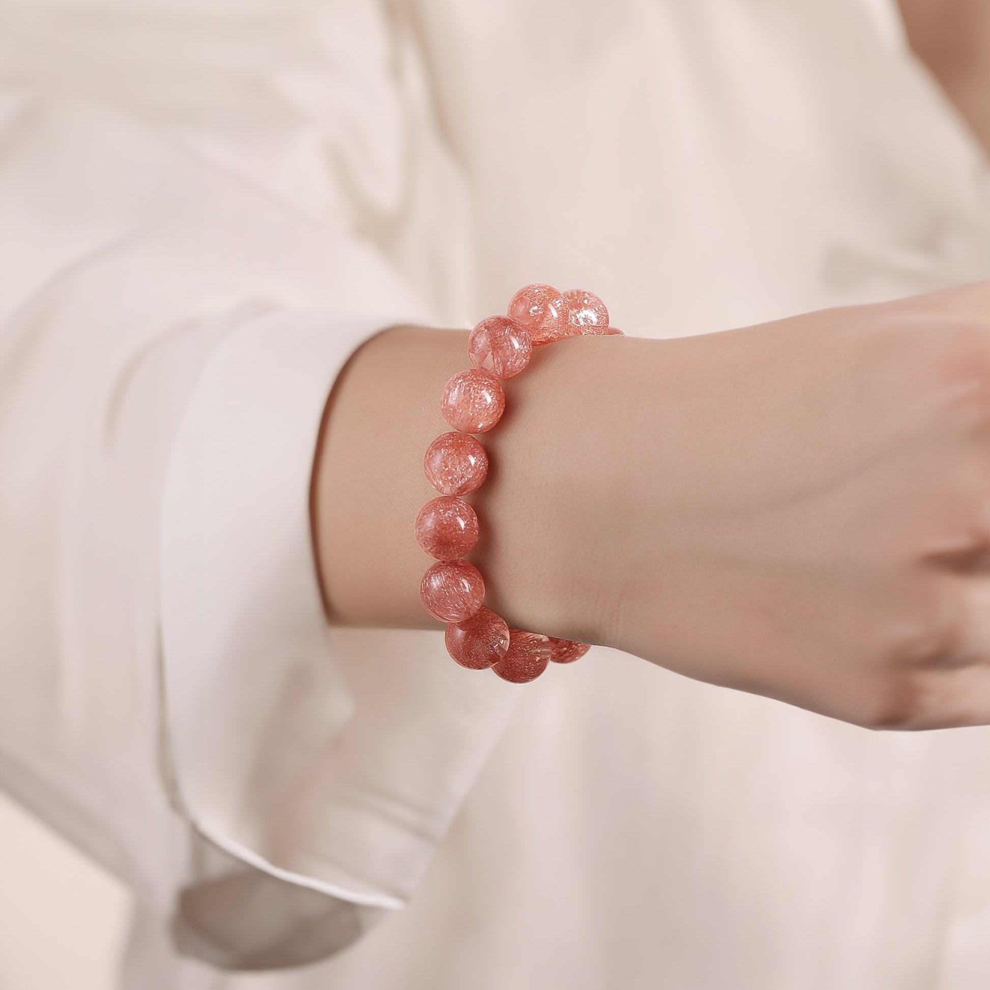 Promotes Wealth : The pink flower patterns within the beads resemble a sparkling, treasure-filled "Treasure Bowl," symbolizing the gathering of wealth. This bracelet can attract and stabilize wealth energy, aiding you in achieving success in your career and finances, becoming a valuable Feng Shui wealth enhancer.