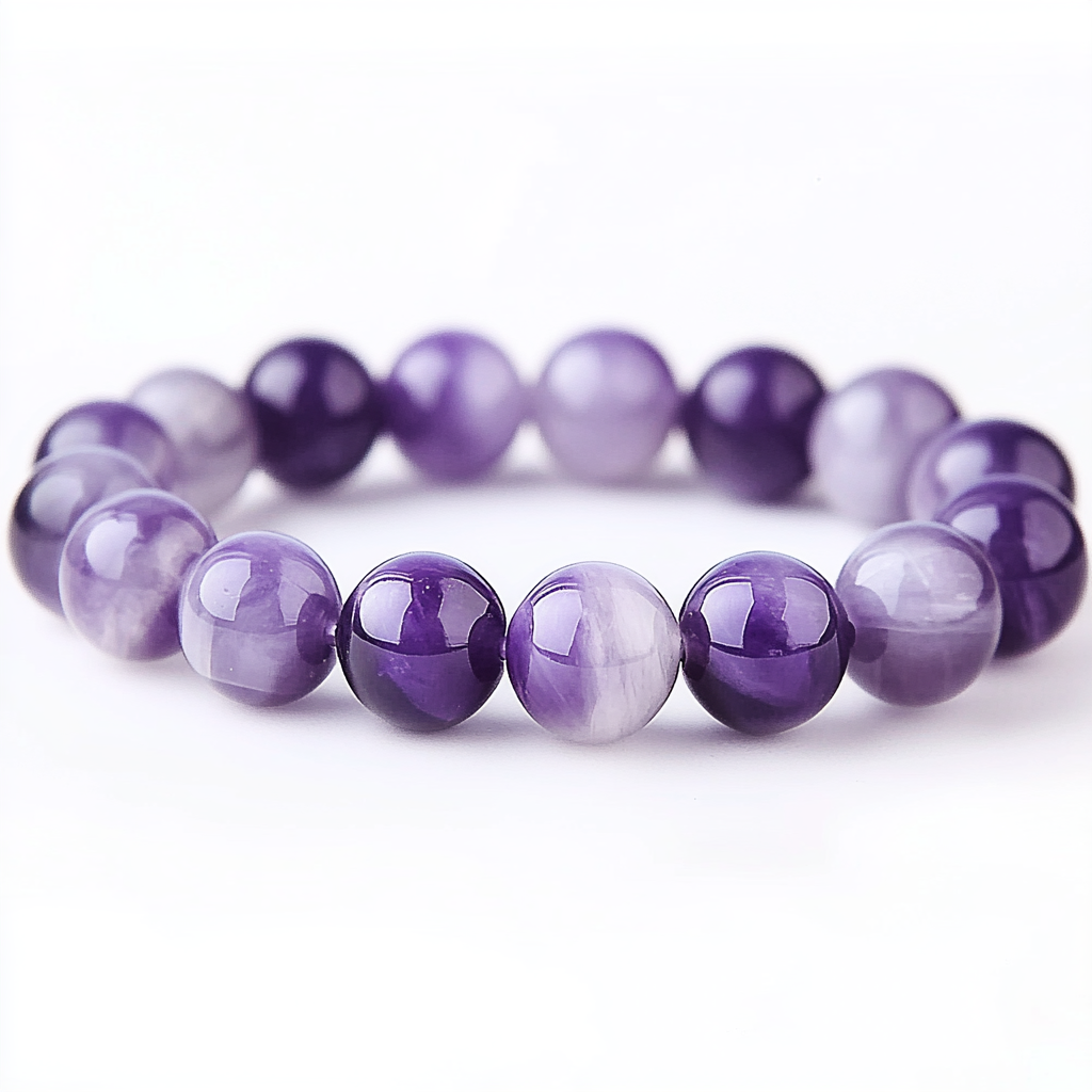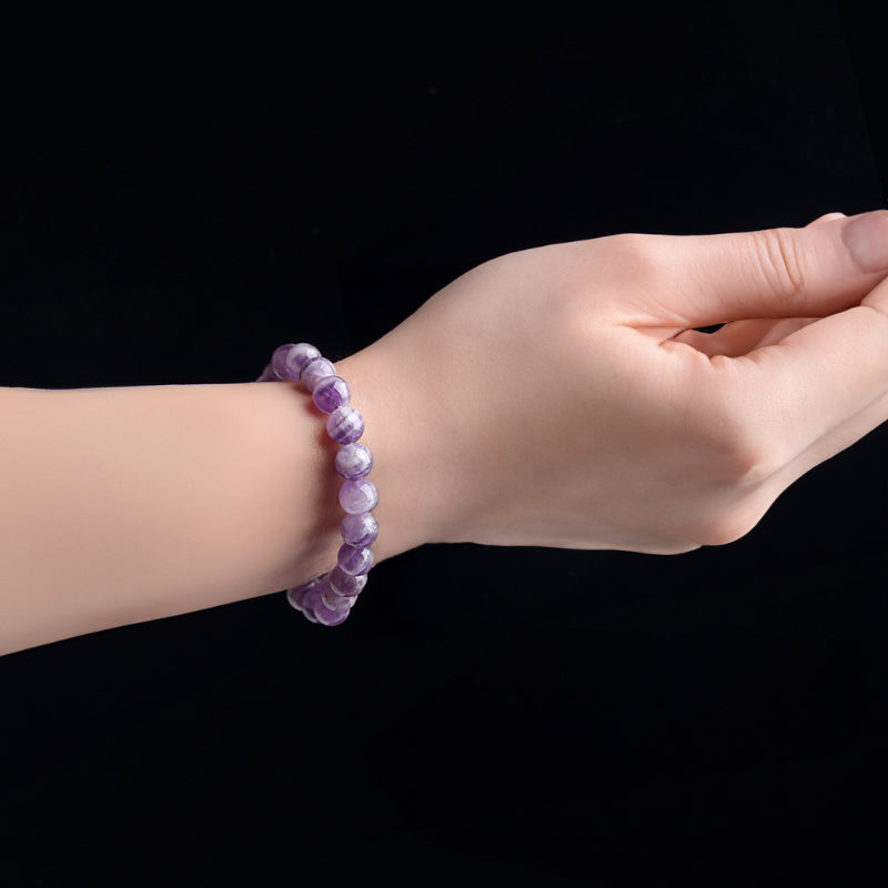 In Feng Shui, amethyst is considered a powerful protective and healing stone. It not only dispels negative energy and shields the wearer from harm but also attracts positive energy and good fortune. Wearing this bracelet on your left hand can enhance your personal energy field, improve luck and relationships, and attract wealth. Additionally, amethyst has calming properties that aid in improving sleep quality and reducing stress, helping you maintain peace and tranquility in your daily life.