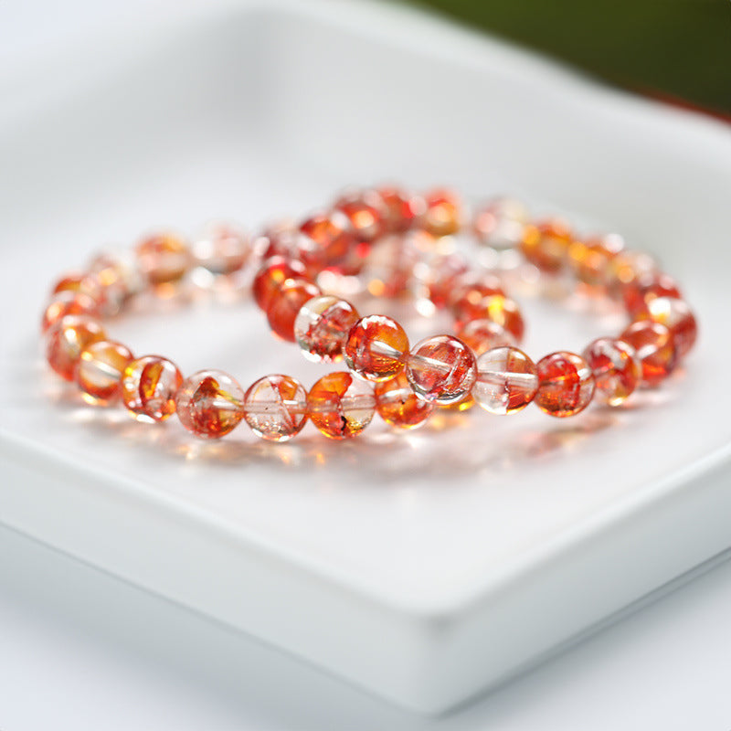 • Storage : Avoid prolonged exposure to strong light to prevent fading or damage.Natural Koi Yellow and Red Phantom Flower Petal and Feather Inclusion Ghost Crystal Bracelet