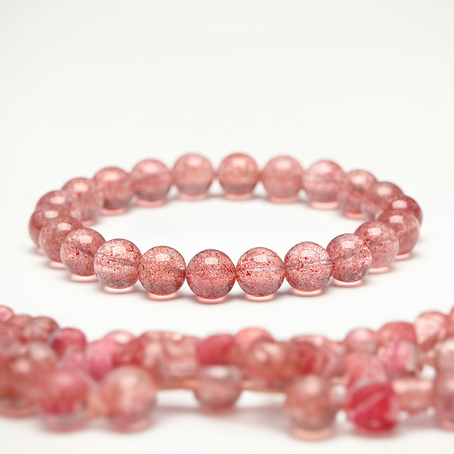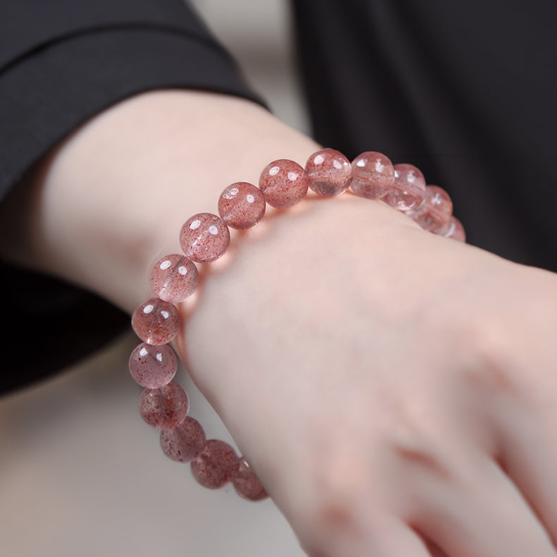 Enhance Social Relationships : The pink tones of strawberry quartz symbolize love and harmony, which can significantly improve interpersonal relationships and communication. For those looking to establish positive connections or collaborate effectively, this bracelet can facilitate smoother interactions and create opportunities for beneficial partnerships.