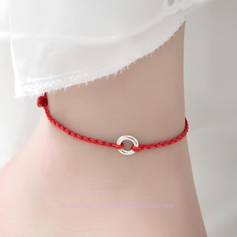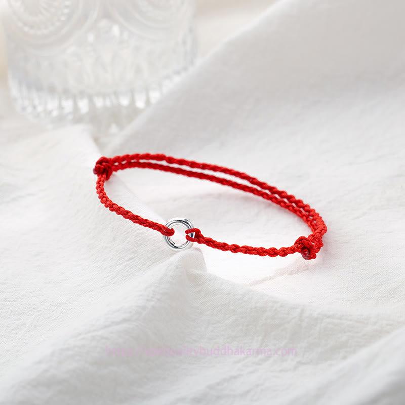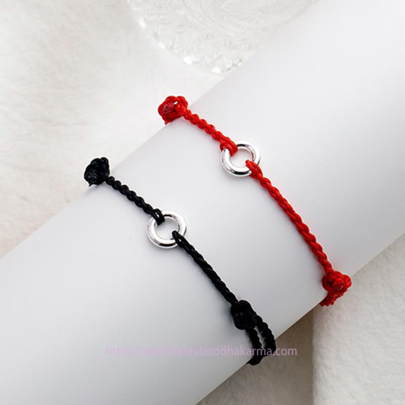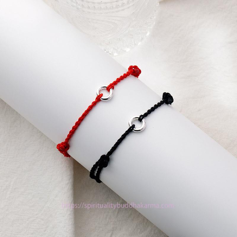 Peace Buckle Rope anklet features a 925 sterling silver peace buckle, symbolizing harmony and good fortune. The anklet is woven with red and black strings, representing protection and strength. This anklet serves as a meaningful talisman, promoting balance and positivity, ideal for those seeking a reminder of peace and luck in their daily life.