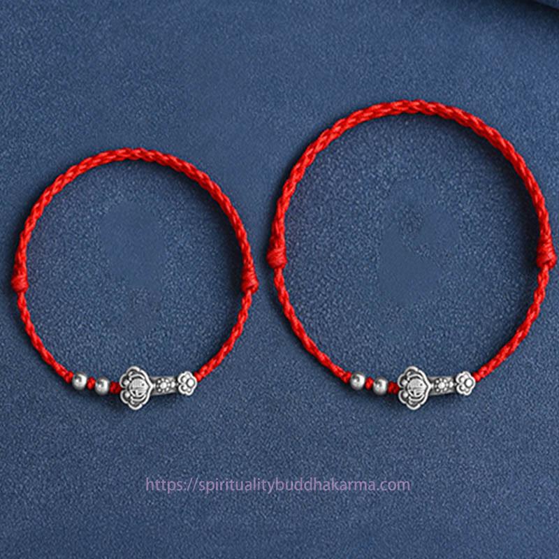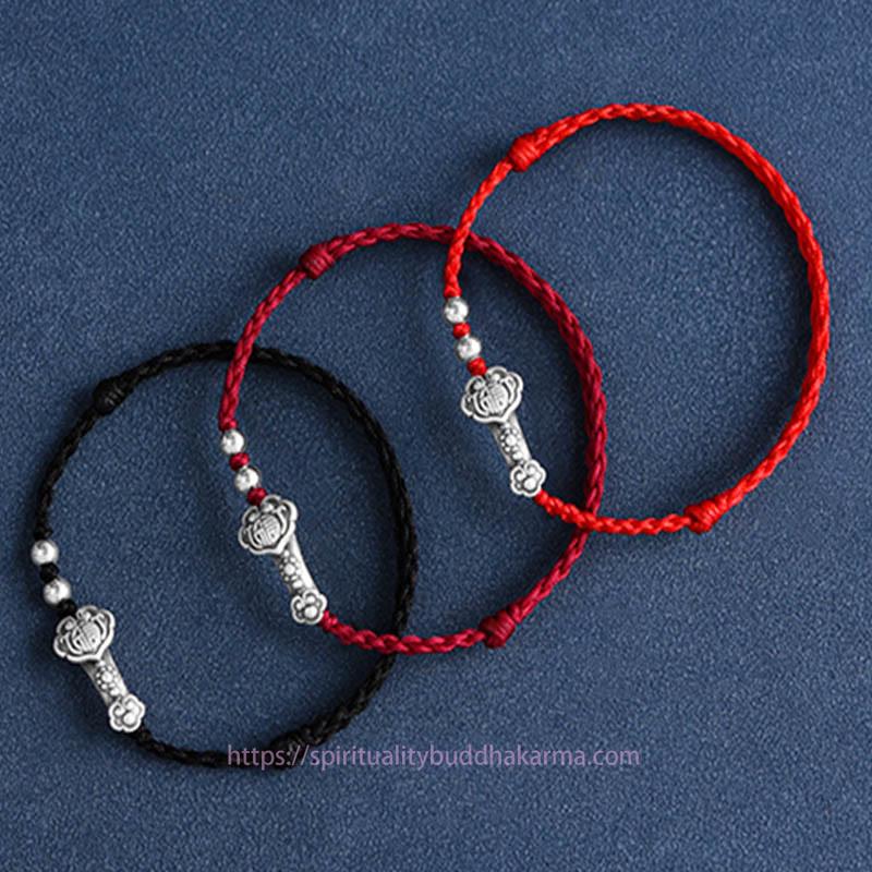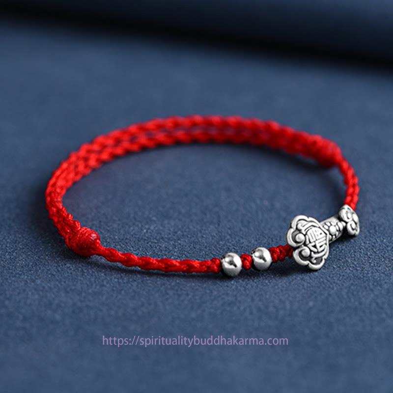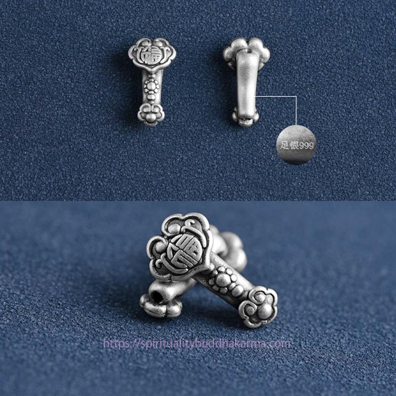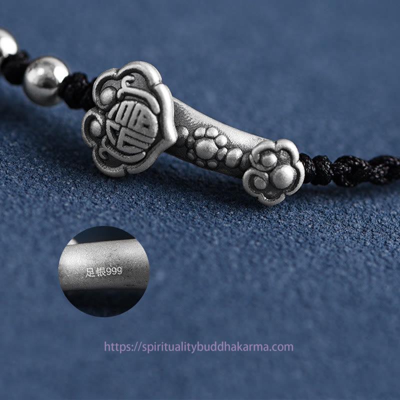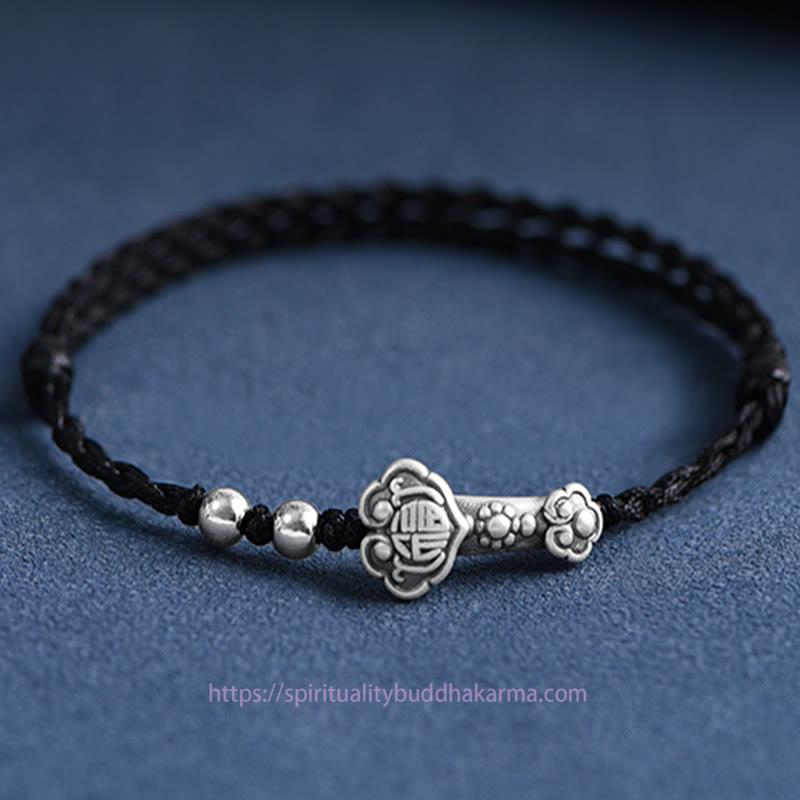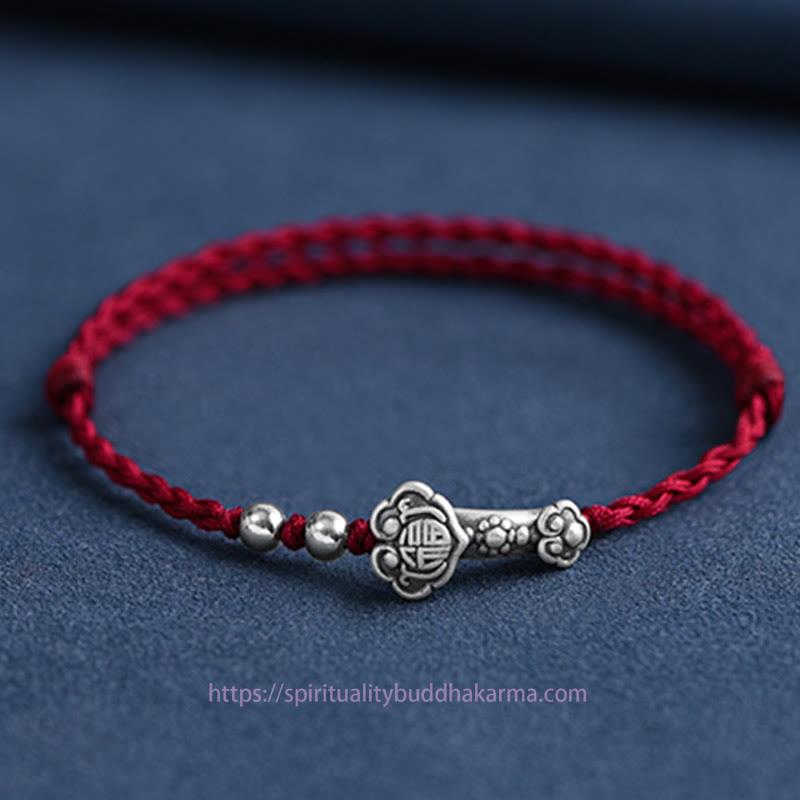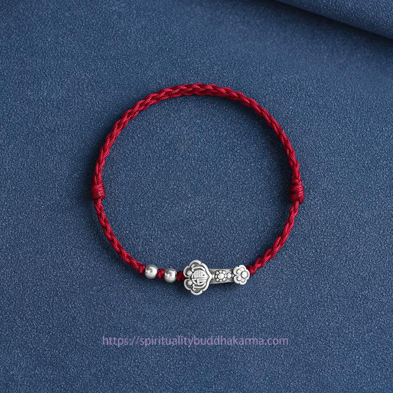 Silver Ruyi Handle bracelet features a 999 sterling silver Ruyi Handle engraved with the Fu Character, symbolizing good fortune and wishes fulfilled. The handcrafted rope design enhances the spiritual symbolism, offering protection and attracting positive energy. This versatile piece can be worn as a bracelet or anklet, making it a meaningful accessory to carry blessings throughout your day.