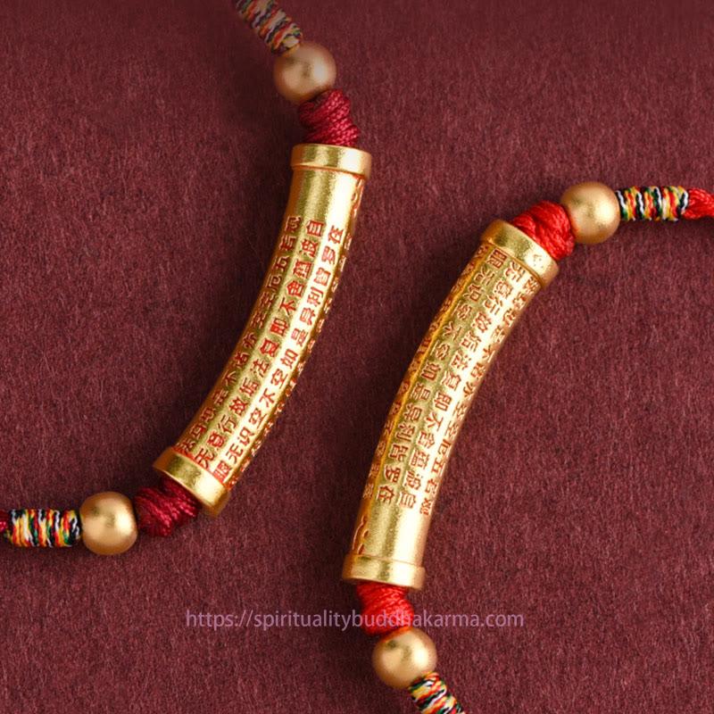 Alloy Heart Sutra bracelet features a cylindrical alloy pendant engraved with the Heart Sutra, offering protection and strength to its wearer. The durable braided rope complements the spiritual significance of the pendant, perfect for mindfulness and focus. Whether worn as a bracelet or anklet, this piece is a meaningful way to stay connected to inner peace and protection in your daily life.