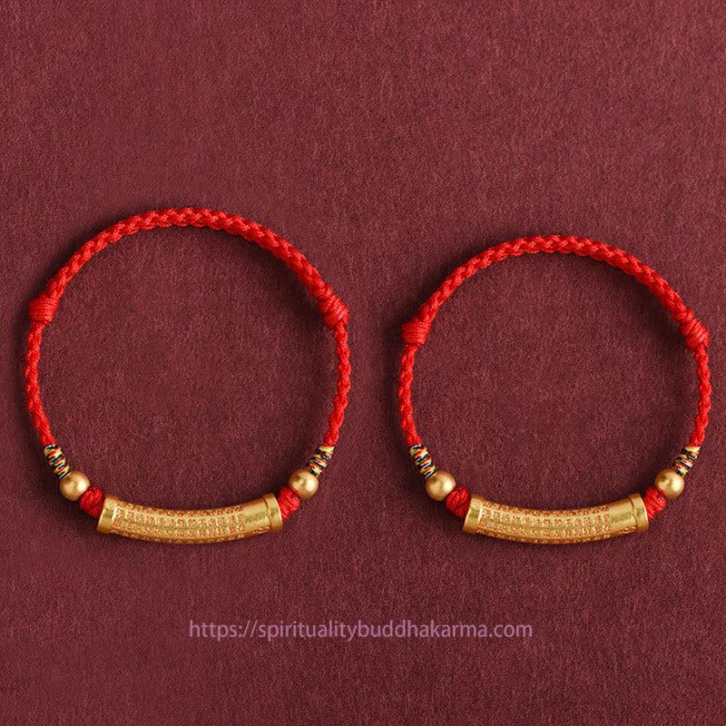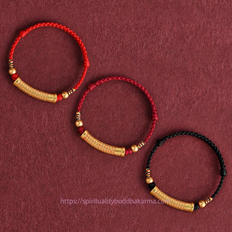 In lineages of Tibetan Vajrayana Buddhism, tying a cord or string around the wrist is common during ceremonies. Traditionally, the Lama blesses the string and then ties a knot and imbues it with a mantra. Similar to other traditions, it's said that these red cords bring luck and offer protection.
