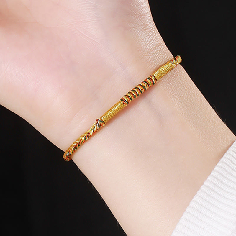 Tibetan Knot Protection Handmade Gold Multicolored Rope Protection Braided Bracelet Anklet