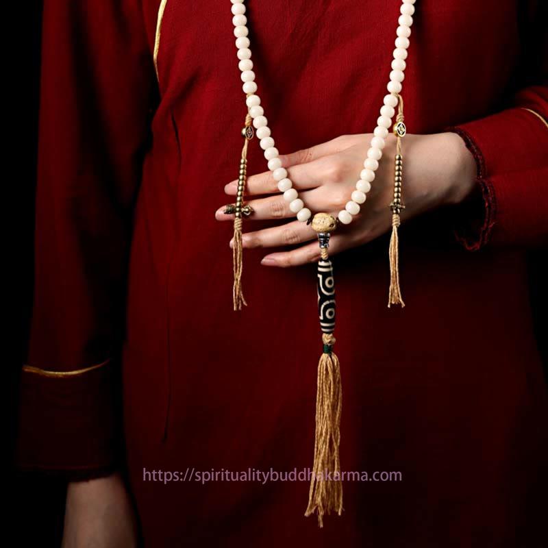 Embrace luck and positive energy with Spirituality Buddha Karma Tibet 108 Mala Beads Bodhi Seed Bagua Vajra Dzi Bead Gray Agate Wealth Bracelet. Experience the power of Bodhi Seed, Dzi beads, and Gray Agate for wealth, health, and blessings.