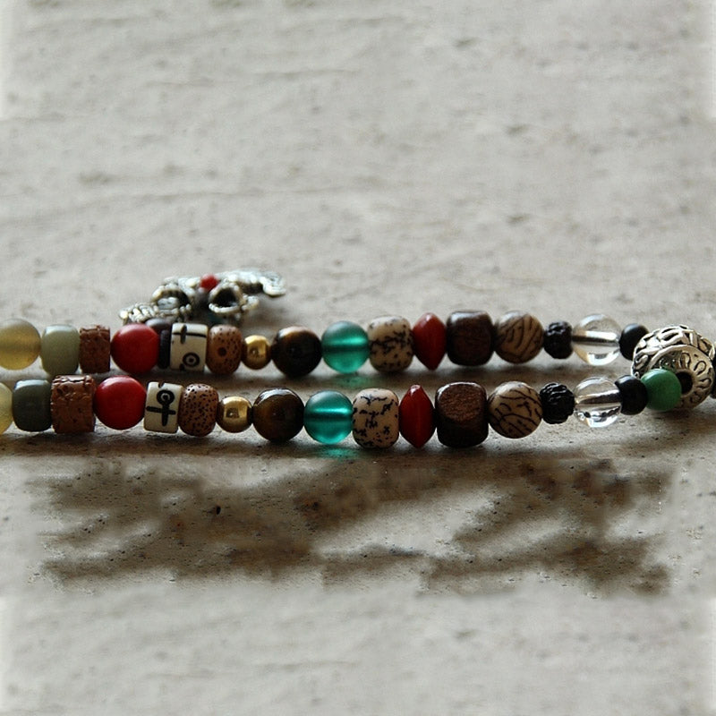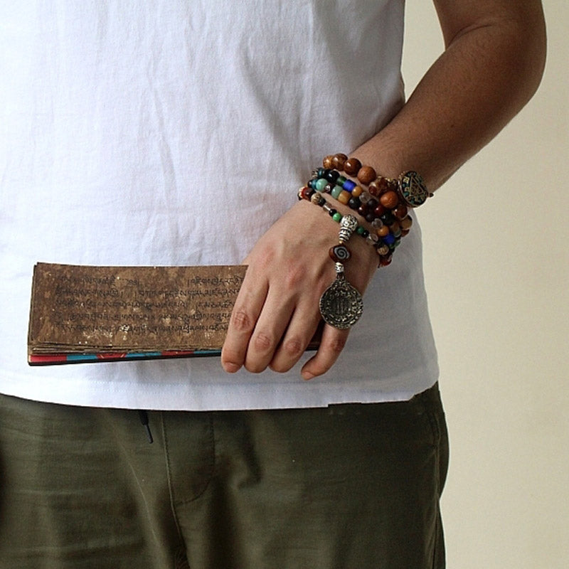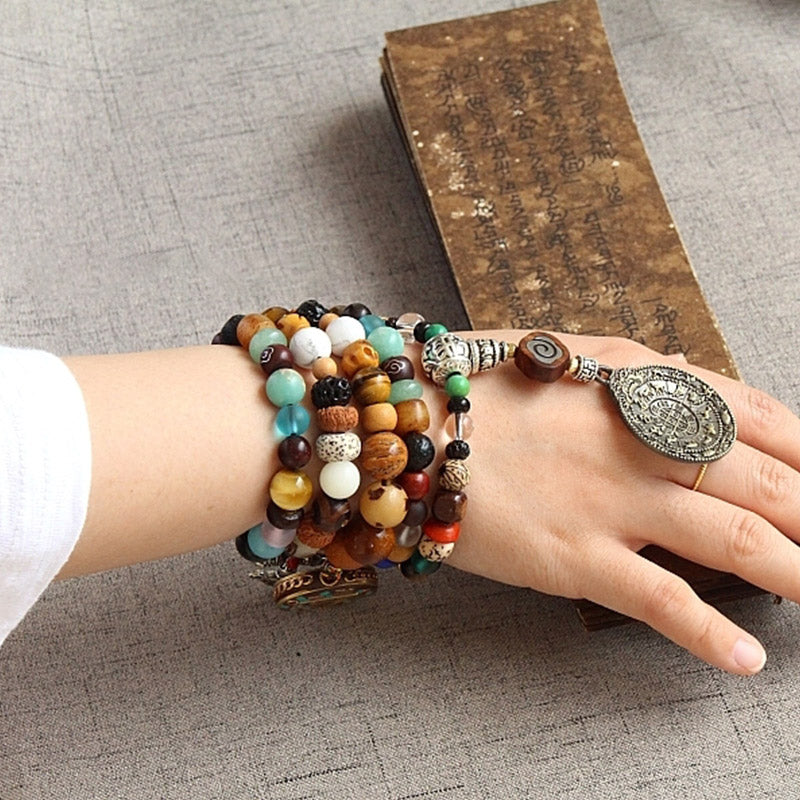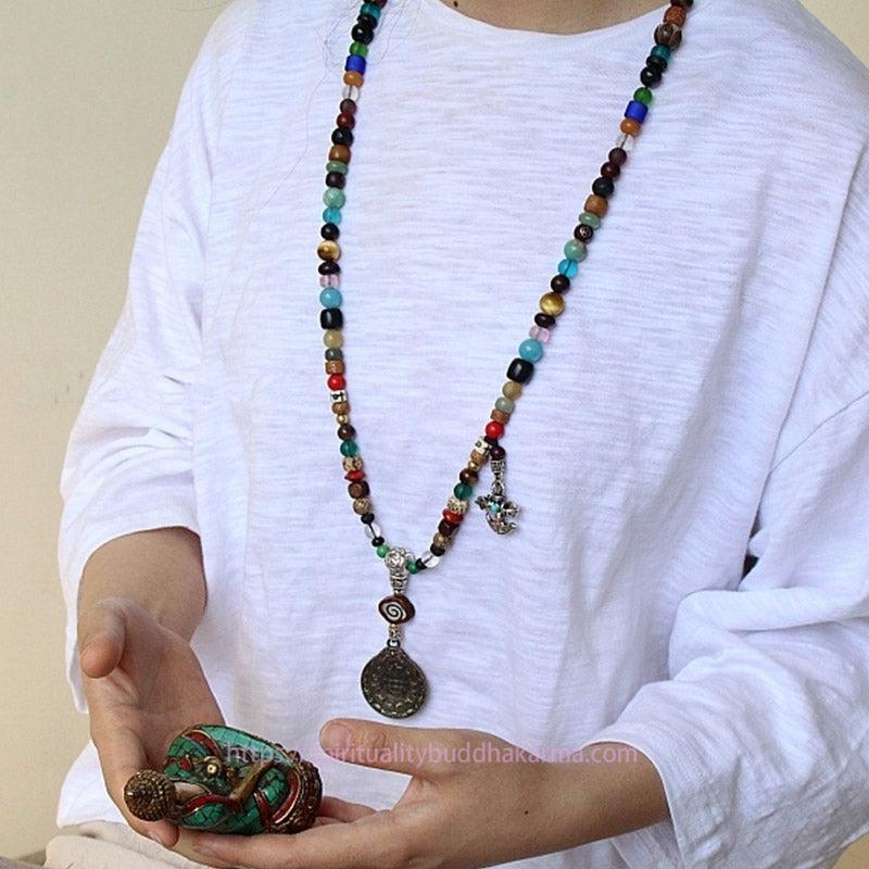- Material: Bodhi Seed, Cinnabar, Copper, Tiger Eye, Coloured Glaze, Purple Core Wood, White Crystal, Coconut, Turquoise;