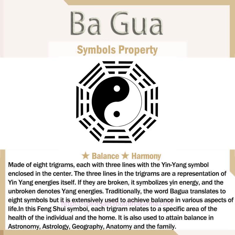 Made of eight trigrams, each with three lines with the Yin-Yang symbol enclosed in the center. The three lines in the trigrams are a representation of Yin Yang energies itself. If they are broken, it symbolizes yin energy, and the unbroken denotes Yang energies. Traditionally, the word Bagua translates to eight symbols but it is extensively used to achieve balance in various aspects of life.In this Feng Shui symbol, each trigram relates to a specific area of the health of the individual and the home. It is also used to attain balance in Astronomy, Astrology, Geography, Anatomy and the family.