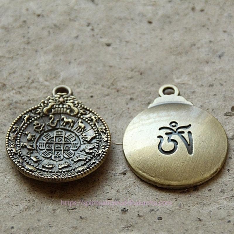 The three-layer mantra wheel held by the "Zibaza" mythical beast in the middle part of the Nine Palaces Bagua Amulet uses "Tiantie", "Tuojia" and "Lima", which are very special in Tibetan areas.
