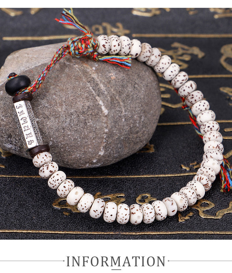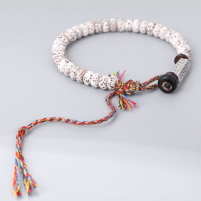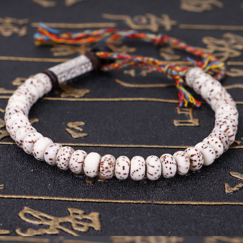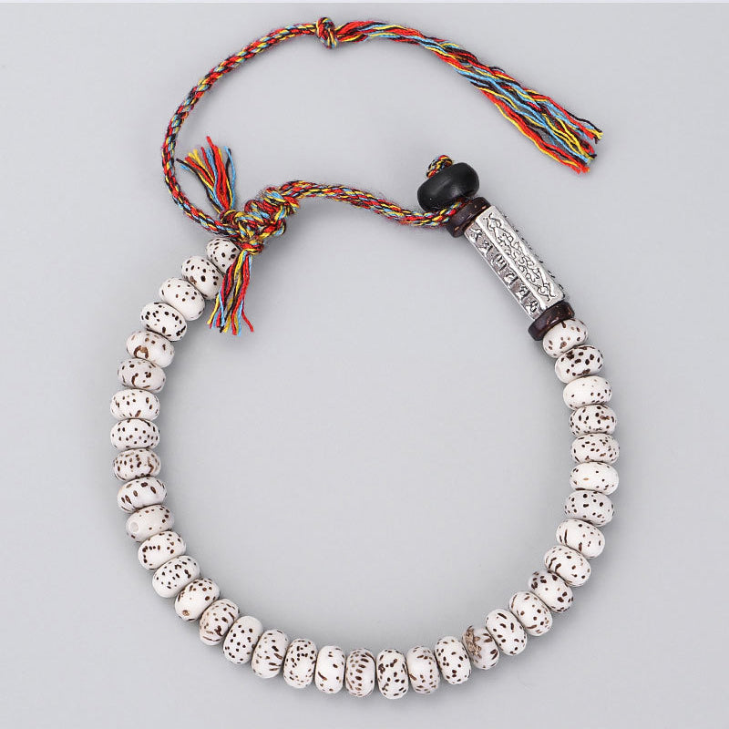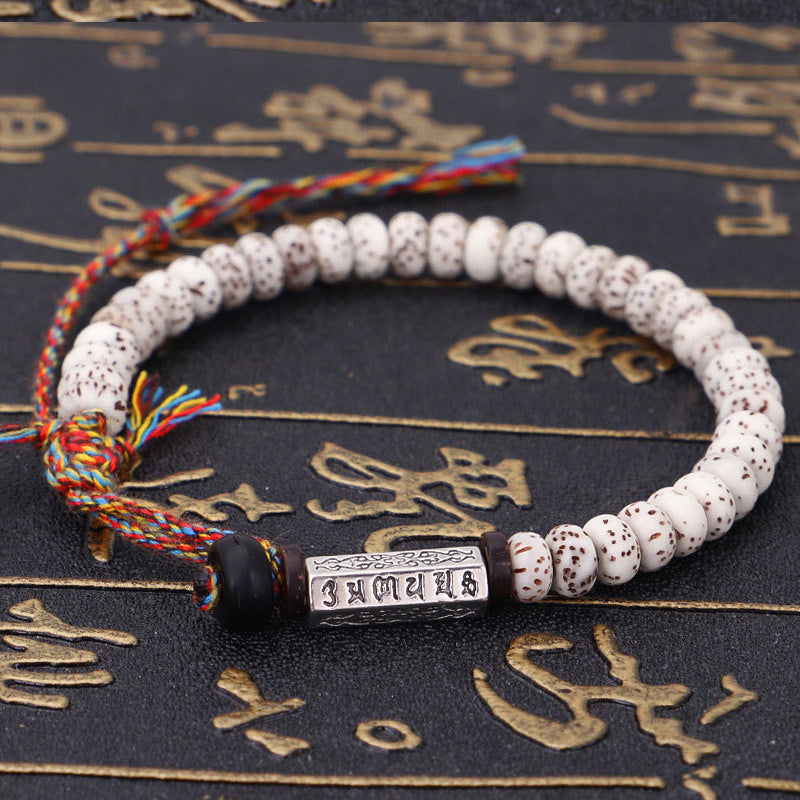 042 Om Mani Padme Hum Tibetan Bodhi Seed Bracelet Multicolored Thread with Six-Character Mantra
