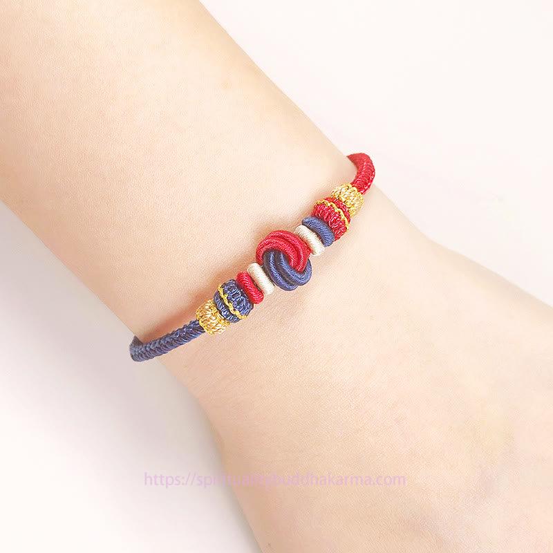 In lineages of Tibetan Vajrayana Buddhism, tying a cord or string around the wrist is common during ceremonies. Traditionally, the Lama blesses the string and then ties a knot and imbues it with a mantra. Similar to other traditions, it's said that these red cords bring luck and offer protection. In ancient Chinese legend, the Red Thread of Fate is - invisible and ties all those whose lives will intertwine together. It is governed by the Chinese God of marriage, Yue Lao, as it's primarily associated with the link between two people destined to be married. Throughout history and across philosophies, the red string has been worn for protection, faith, good luck, strength, and connection.