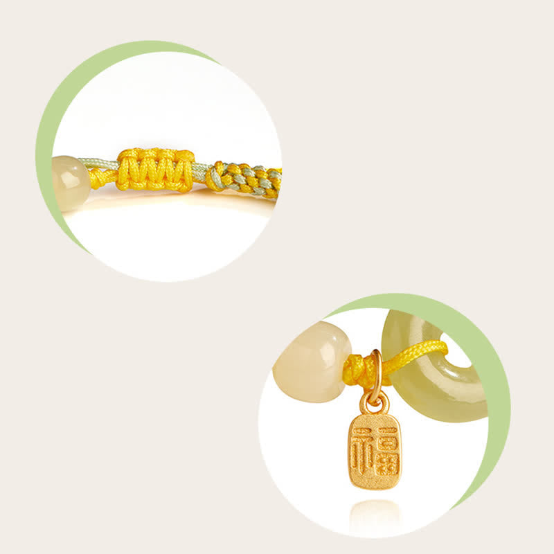 Jade 925 Sterling Silver Hetian Jade Peace Buckle Beaded Luck Happiness Charm Bracelet