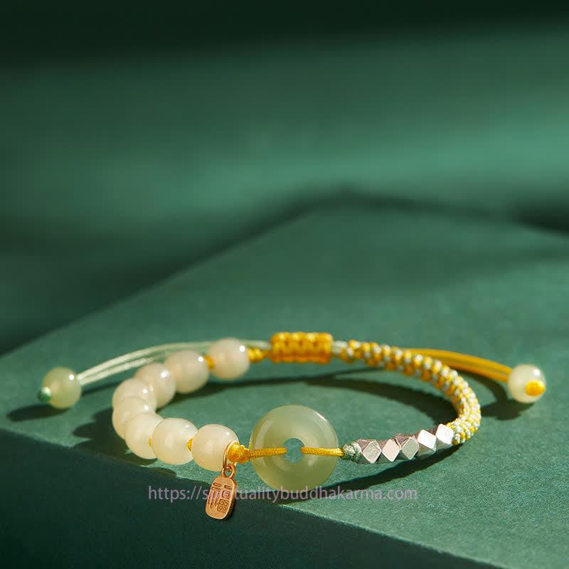 Spirituality Buddha Karma 925 Sterling Silver Hetian Jade Peace Buckle Beaded Luck Happiness Charm Bracelet Bracelet