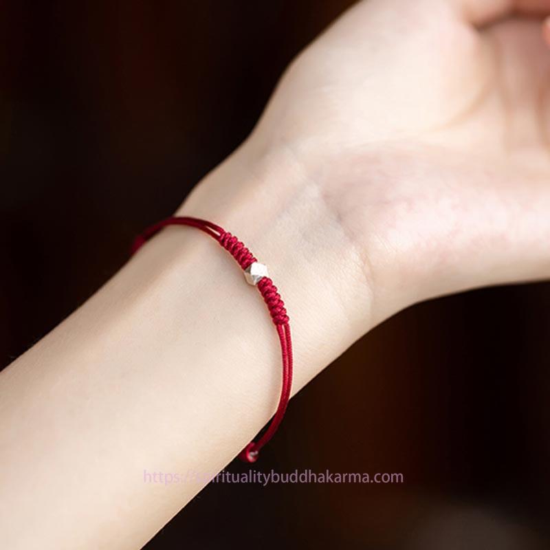 Ancient Tibetan Buddhist Red String Tradition 925 Sterling Silver Luck Bead Protection Red String Braided Bracelet