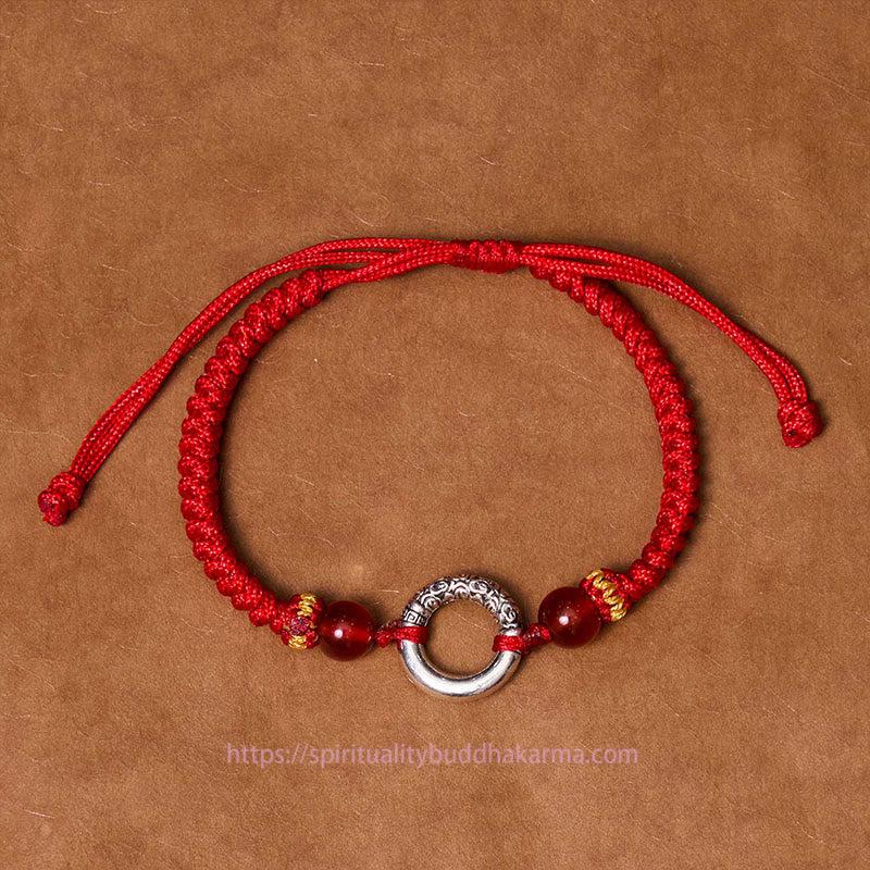 In lineages of Tibetan Vajrayana Buddhism, tying a cord or string around the wrist is common during ceremonies. Traditionally, the Lama blesses the string and then ties a knot and imbues it with a mantra. Similar to other traditions, it's said that these red cords bring luck and offer protection. In ancient Chinese legend, the Red Thread of Fate is - invisible and ties all those whose lives will intertwine together. It is governed by the Chinese God of marriage, Yue Lao, as it's primarily associated with the link between two people destined to be married. Throughout history and across philosophies, the red string has been worn for protection, faith, good luck, strength, and connection.