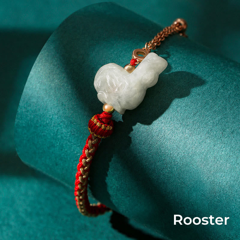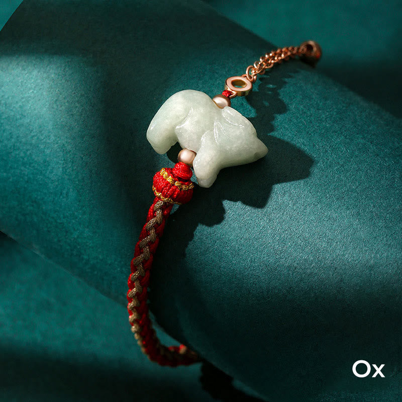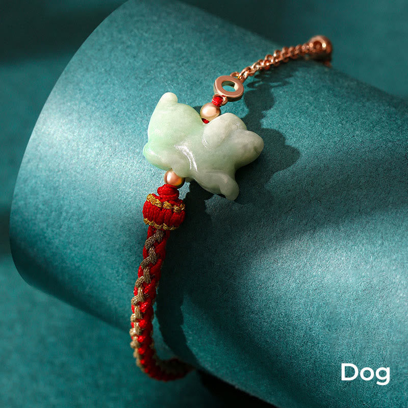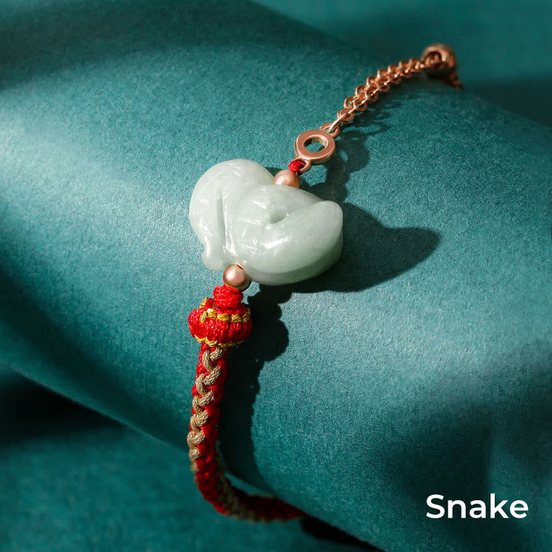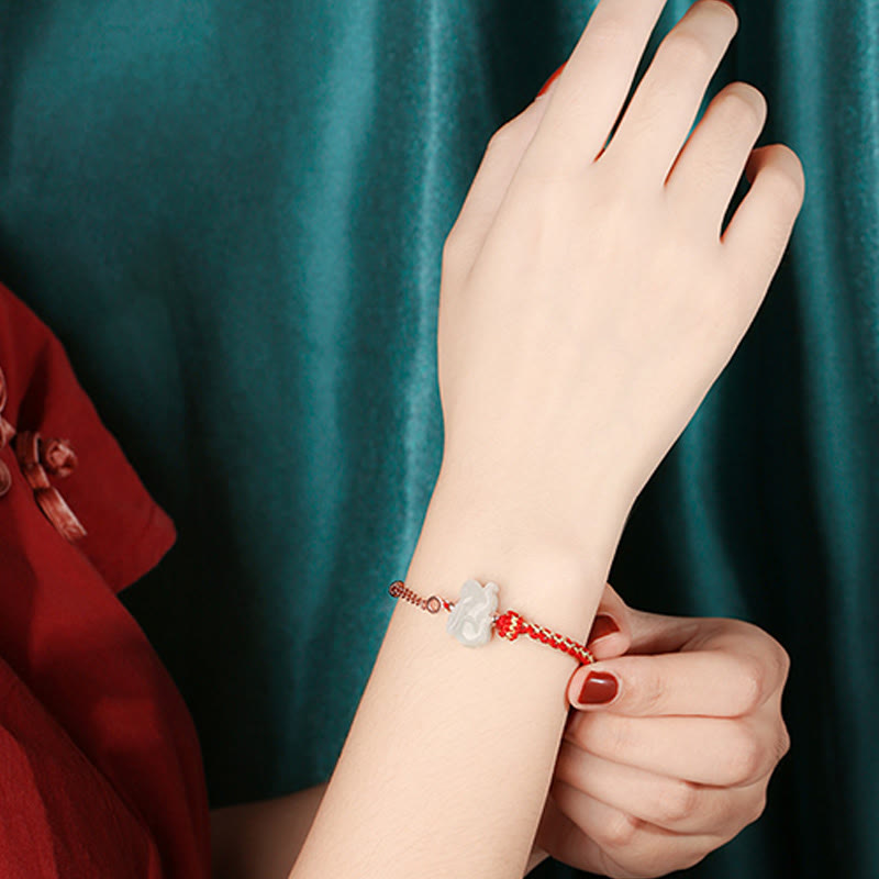 Jade 925 Sterling Silver Year of the Dragon Chinese Zodiac Jade Luck String Chain Bracelet
