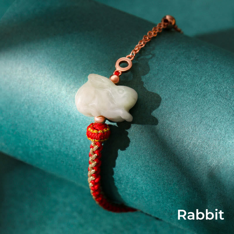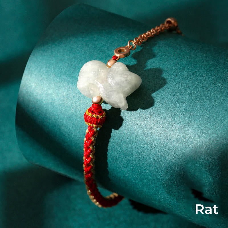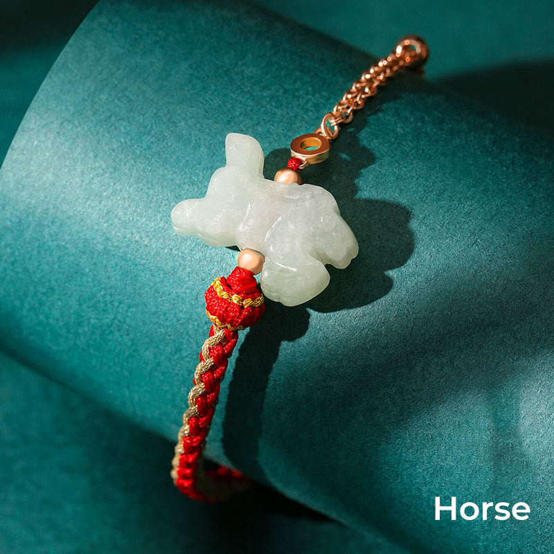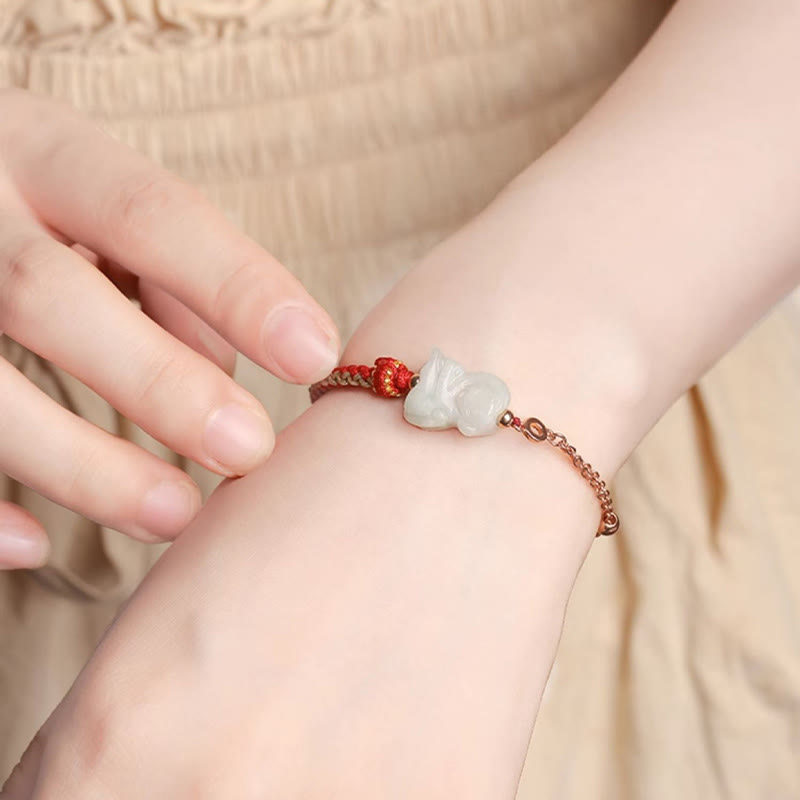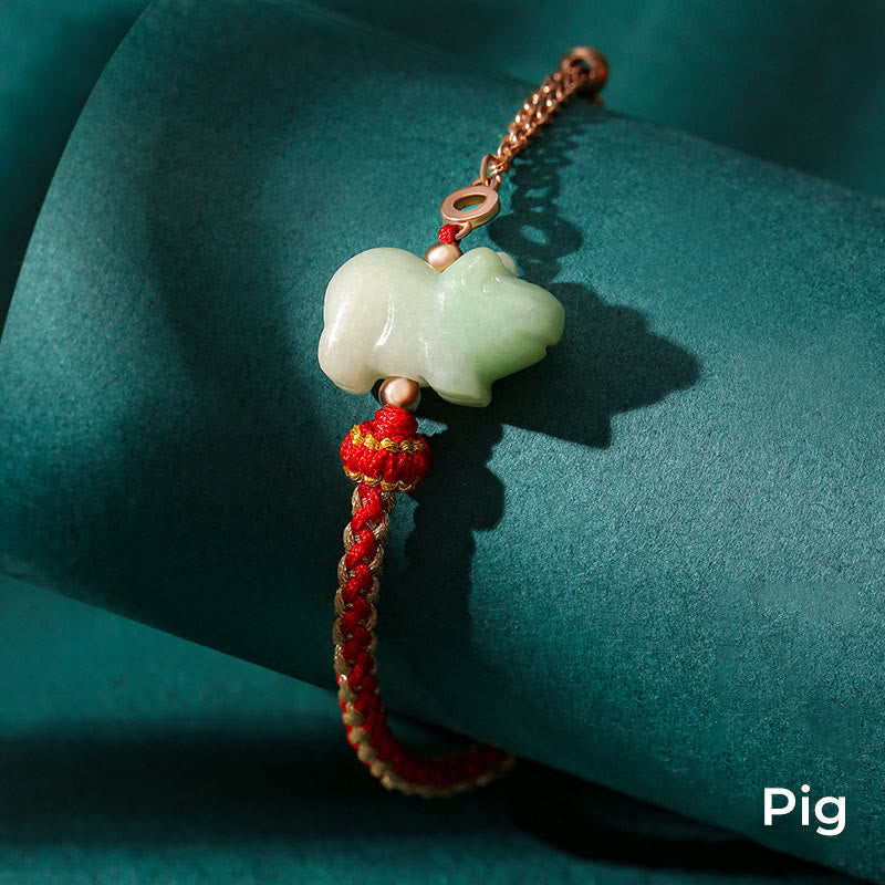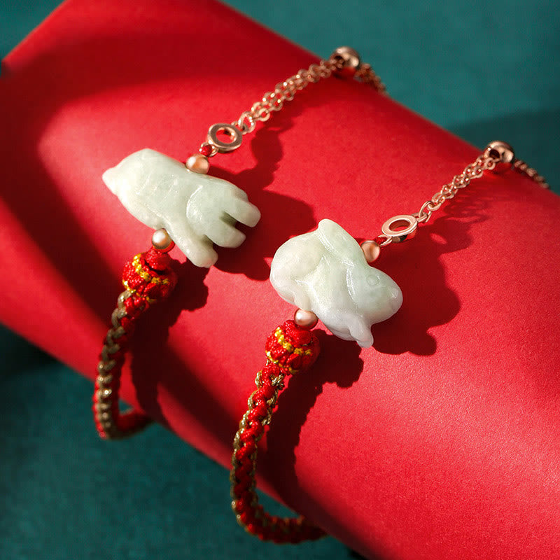 Jade 925 Sterling Silver Year of the Dragon Chinese Zodiac Jade Luck String Chain Bracelet