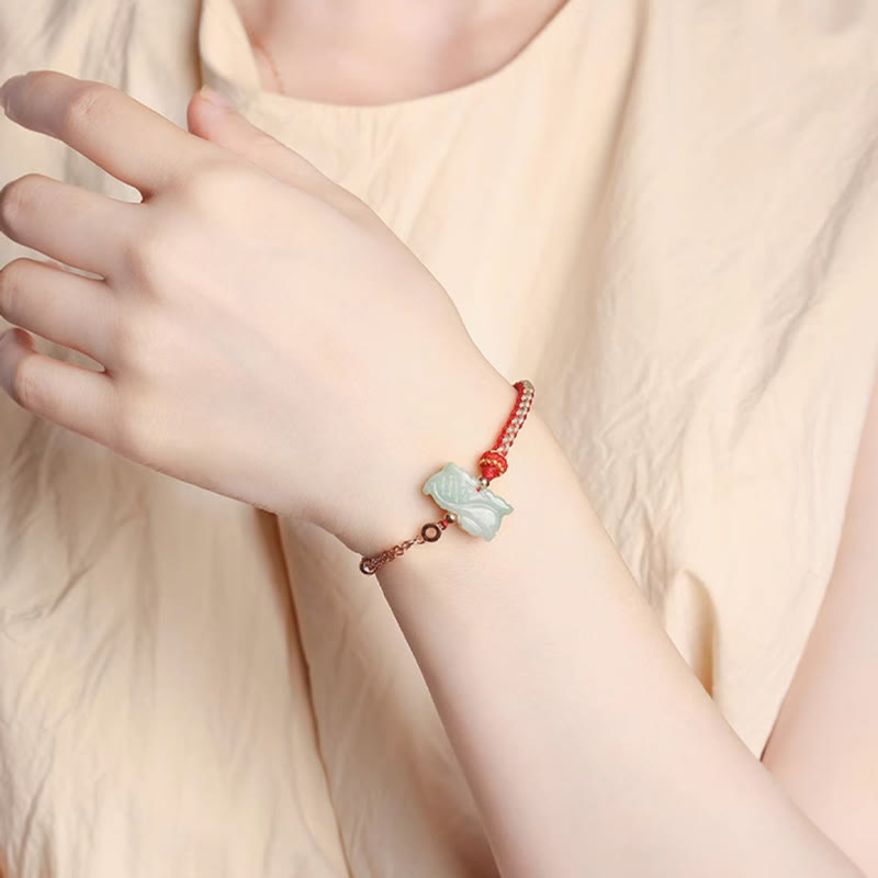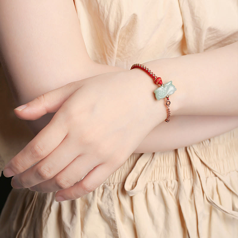 Spirituality Buddha Karma 925 Sterling Silver Year of the Dragon Chinese Zodiac Jade Luck String Chain Bracelet Bracelet