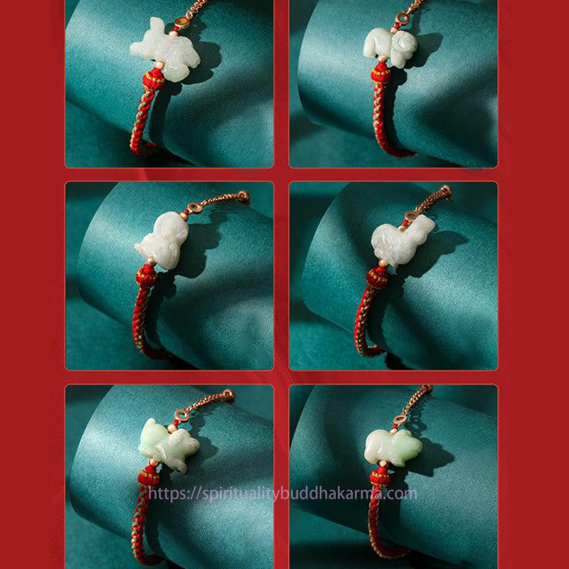 Spirituality Buddha Karma 925 Sterling Silver Year of the Dragon Chinese Zodiac Jade Luck String Chain Bracelet Bracelet BS 4