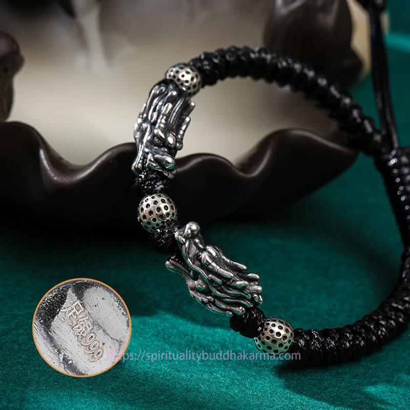 Ancient Tibetan Energy Protection 999 Sterling Silver Double Dragon Luck Handmade Braided Bracelet Bracelet