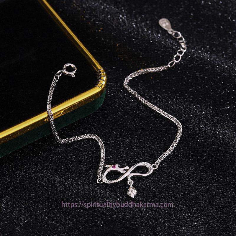 Unleash the dual power of luck and protection with our 999 Sterling Silver Zircon Endless Knot Tail Charm bracelet. This piece elegantly combines the timeless strength of the dragon with the boundless wisdom of the endless knot, enhanced by the sparkle of zircon, to bring its wearer prosperity, safeguarding, and a continuous flow of positive energy.💕