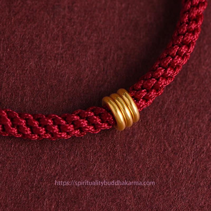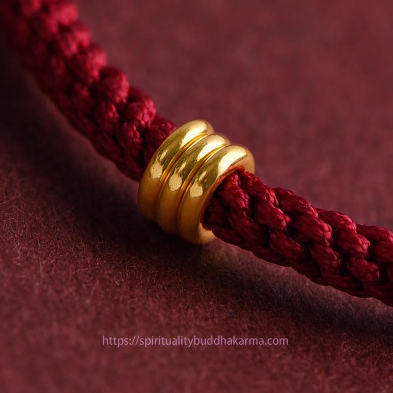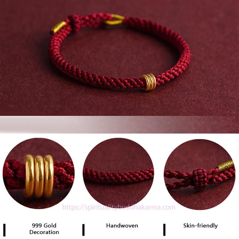 Gold Triple Ring Design bracelet features 999 gold rings interlinked to symbolize unity and connection, set against a handmade braided rope. The gold rings represent strength and harmony, while the braided rope adds durability and style. This bracelet serves as a meaningful token of personal connections and balance, offering both aesthetic appeal and symbolic significance.