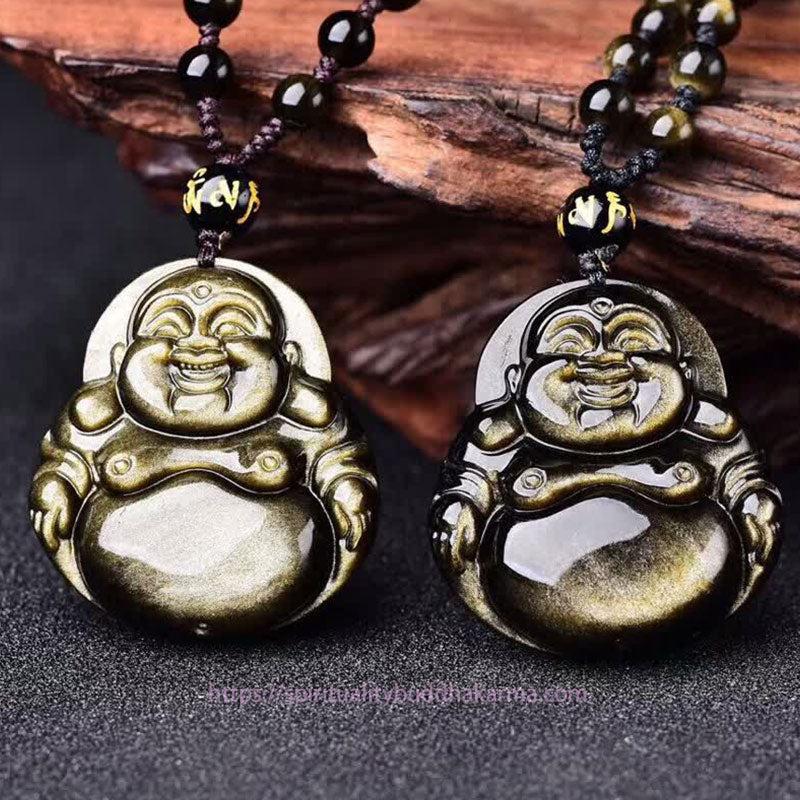 Buddha Energy Necklace Laughing Buddha Gold Sheen Obsidian Wealth Necklace Pendant