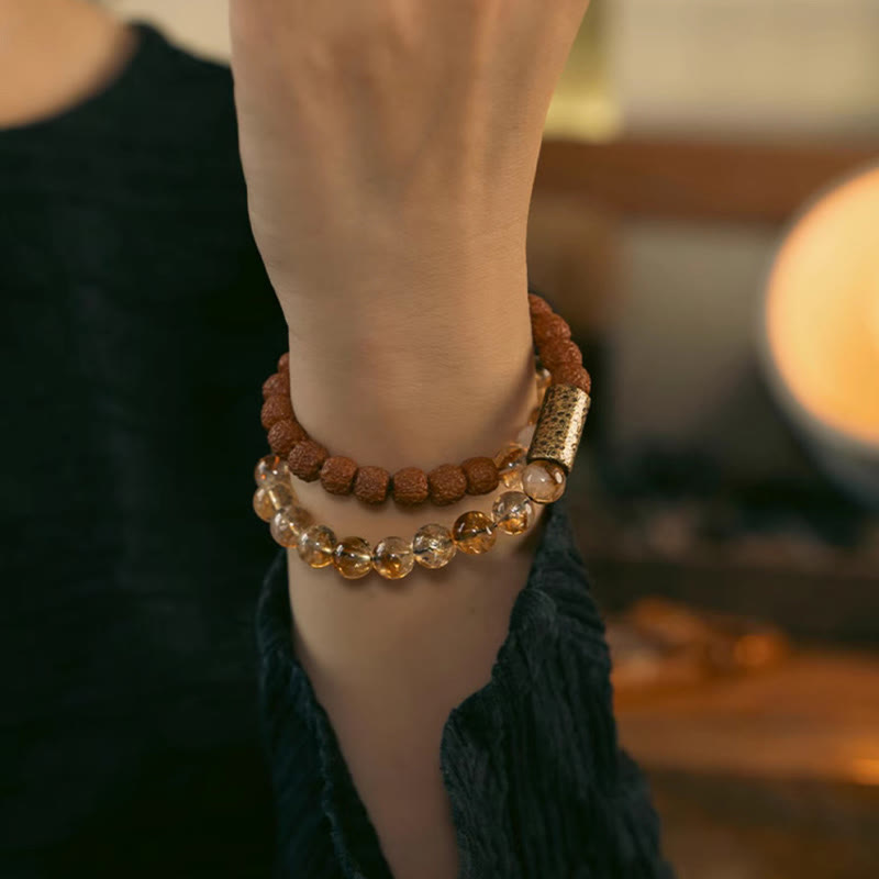 Golden Energy Citrine Natural Wealth Solar Plexus Chakra (Third Chakra) Crystal Rudraksha Bodhi Seed Brass Bead Prosperity Double Wrap Bracelet
