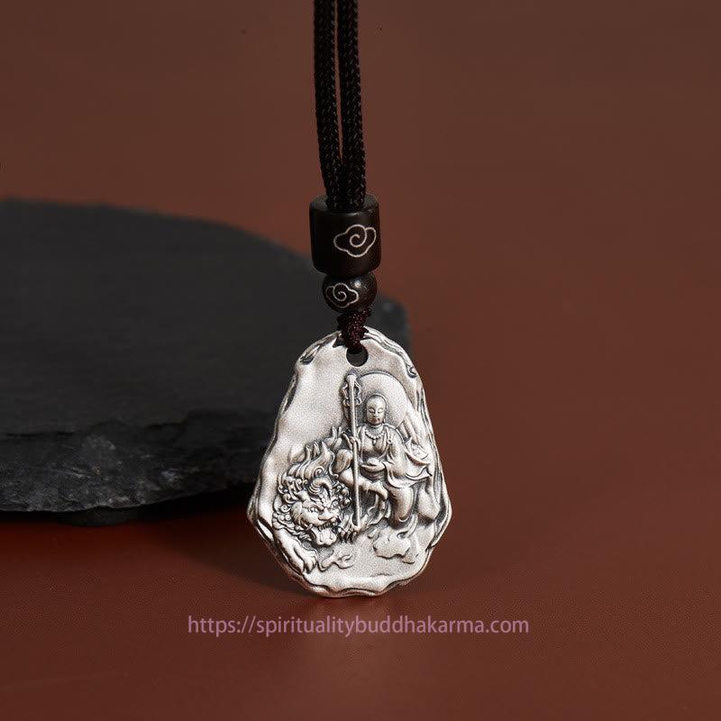 Ksitigarbha Buddha Zakiram Goddess necklace showcases a beautifully crafted pendant featuring the revered Ksitigarbha Buddha and the Zakiram Goddess. Made from high-quality 999 sterling silver, this pendant symbolizes wisdom, protection, and spiritual guidance. Its intricate design makes it a profound accessory for those seeking spiritual connection and a reminder of divine protection.