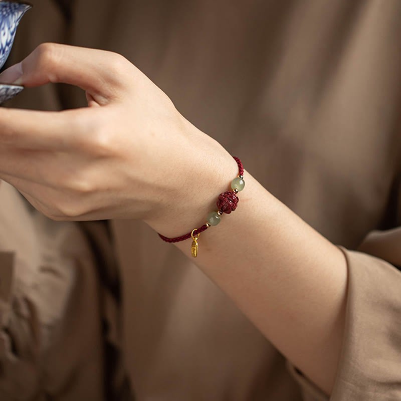 Secure a fortune with the Ancient Tibetan Energy Protection Jade Fu Luck Bracelet, featuring natural cinnabar and Hetian Jade, each embellished with the lucky Fu character. This rope bracelet is a harmonious blend of tradition and elegance, designed to attract luck and positive energies. The intricate craftsmanship highlights the cultural depth of the Chinese Zodiac, making it a powerful amulet for those seeking to enhance their luck and embrace the blessings of life.