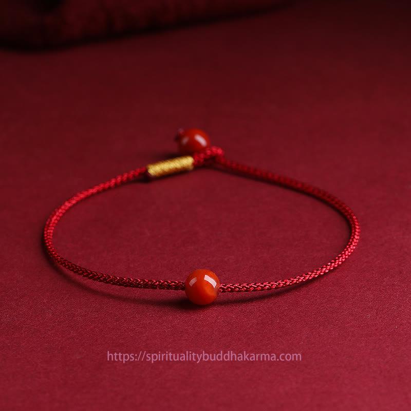 Ancient Tibetan Buddhist Red String Tradition Natural Cinnabar Red Agate Blessing Red String Bracelet