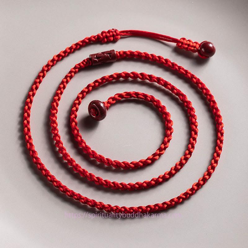 In lineages of Tibetan Vajrayana Buddhism, tying a cord or string around the wrist is common during ceremonies. Traditionally, the Lama blesses the string and then ties a knot and imbues it with a mantra. Similar to other traditions, it's said that these red cords bring luck and offer protection. In ancient Chinese legend, the Red Thread of Fate is - invisible and ties all those whose lives will intertwine together. It is governed by the Chinese God of marriage, Yue Lao, as it's primarily associated with the link between two people destined to be married. Throughout history and across philosophies, the red string has been worn for protection, faith, good luck, strength, and connection.