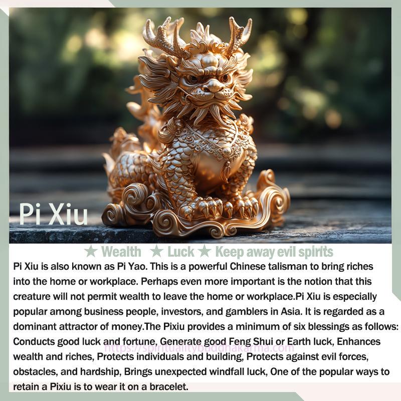 PiXiu is also known as PiYao. This is a powerful Chinese talisman to bring riches into the home or workplace.