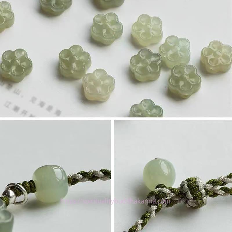 Ancient Tibetan Buddhist Red String Tradition Handmade Plum Blossom Flower Jade Luck Prosperity Braided Bracelet