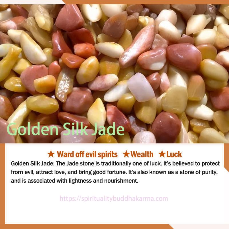 Golden Silk Jade: The Jade stone is traditionally one of luck. It¡®s believed to protect from evil, attract love, and bring good fortune. It¡®s also known as a stone of purity, and is associated with lightness and nourishment.