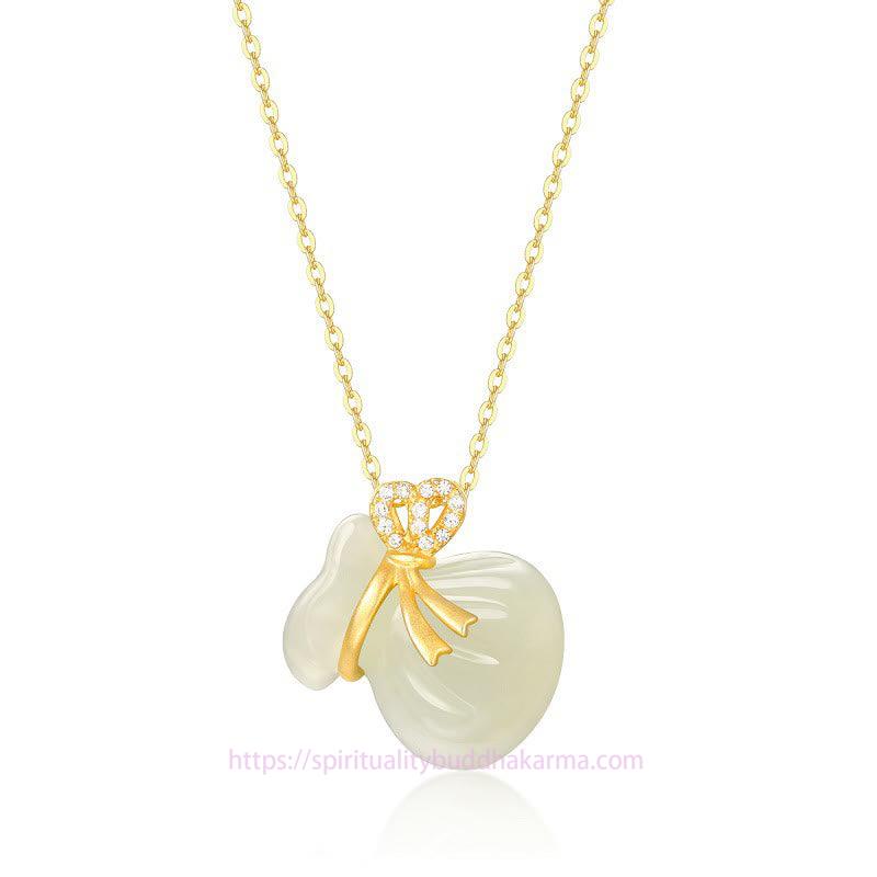 Embrace luck and prosperity with our Spirituality Buddha Karma Natural Hetian White Jade Luck Money Bag Necklace Pendant. Crafted from genuine Hetian White Jade, this pendant features an intricately carved money bag symbol, representing abundance and wealth. Carry the blessings of good fortune wherever you go with this elegant and meaningful accessory.