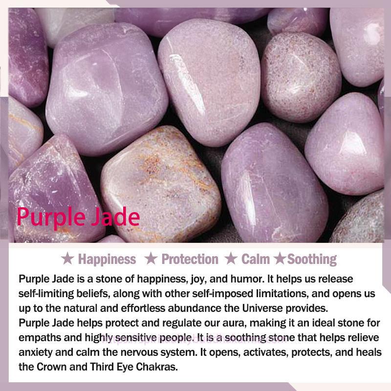 Purple Jade is a stone of happiness, joy, and humor. It helps us release self-limiting beliefs, along with other self-imposed limitations, and opens us up to the natural and effortless abundance the Universe provides.