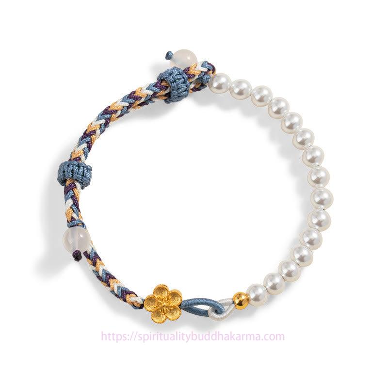 Sterling Silver Peach Blossom bracelet features 925 sterling silver, adorned with a delicate peach blossom, pearl, and chalcedony. This healing rope bracelet symbolizes renewal and tranquility, combining elegance with spiritual benefits. The intricate design and quality materials make it a meaningful accessory, perfect for those seeking to embrace inner peace and harmony through beautiful, natural elements.💕
