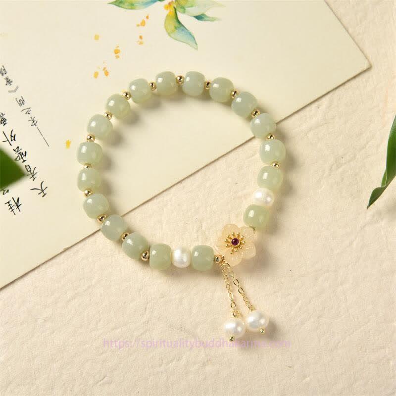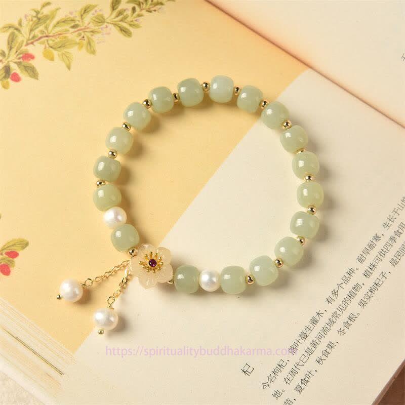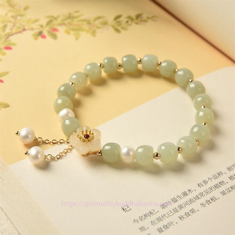 Discover the harmonious blend of Hetian Jade and Pearl in our Spirituality Buddha Karma Bracelet. Experience the beauty and power of jade, attracting prosperity and abundance into your life. The calming and purifying properties of pearl bring happiness and peace. Embrace positivity, wealth, and well-being with this handcrafted masterpiece.
