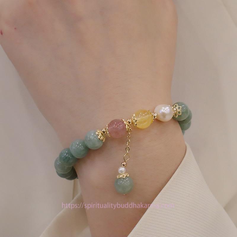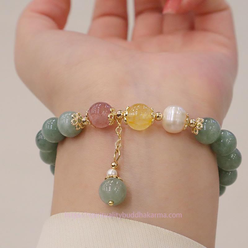 Jade Jade Pearl Strawberry Quartz Abundance Luck Bead Charm Bracelet